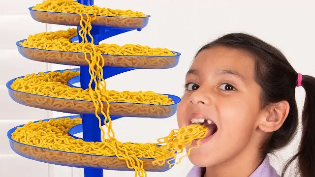 1٫6میلیون بازدیددر ویدیو سرگرمی کودکانه کارخانه نودل الی داره دیوونه میشه! اولش نودل زیادی درست میکنه، بعد سبزیجات رو فراموش میکنه و حتی نوشیدنیها رو هم قاطی میکنه! 😅 خوشبختانه، وندی مدیر همیشه آمادهست تا به الی کمک کنه تا سفارشها رو درست کنه و به اون یاد بده که چطور با دقت گوش بده، غذای کمتری هدر بده و قبل از سرو کردن سوال بپرسه.