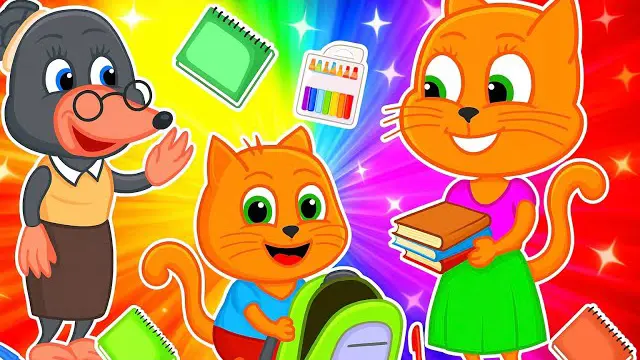 کارتون خانواده گربه این داستان - بردن کیف مدرسهام