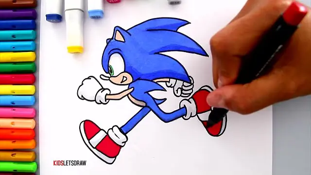 آموزش نقاشی به کودکان - سونیک در حال دویدن با رنگ آمیزی